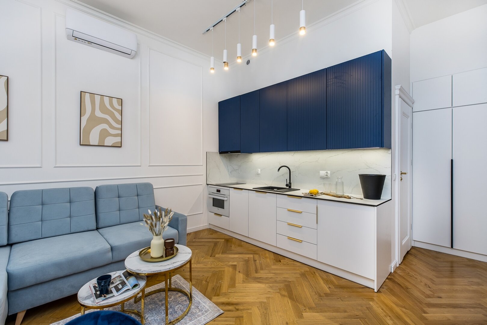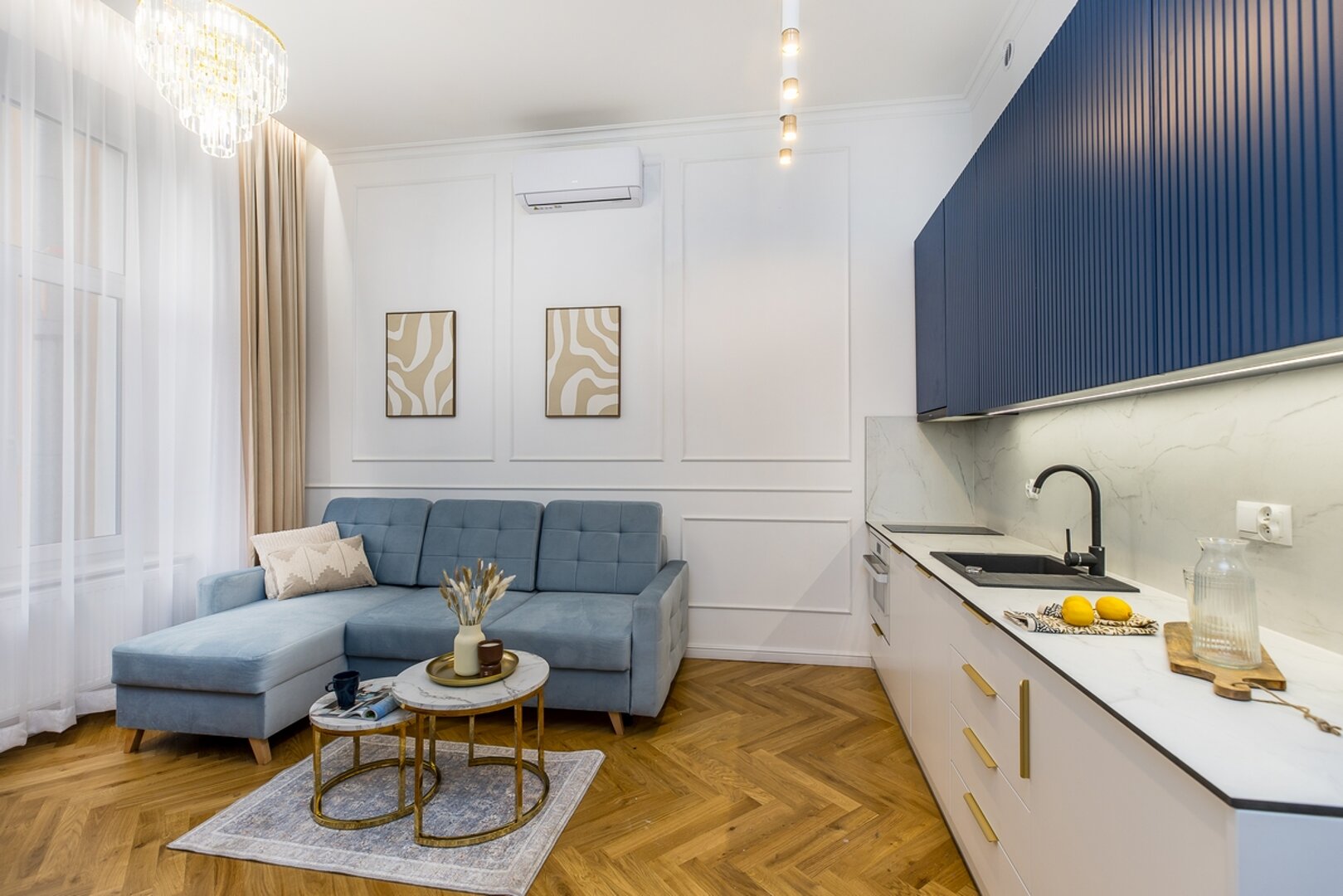 A stylish one-bedroom 33 m² apartment located in a newly renovated historic townhouse with a modern design, right in the heart of Kraków.