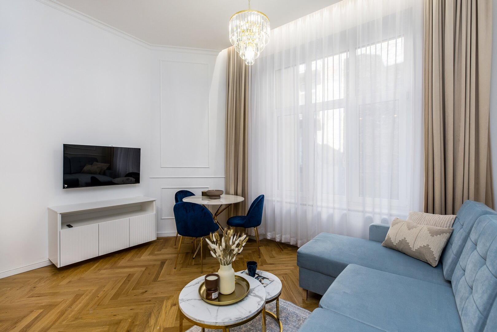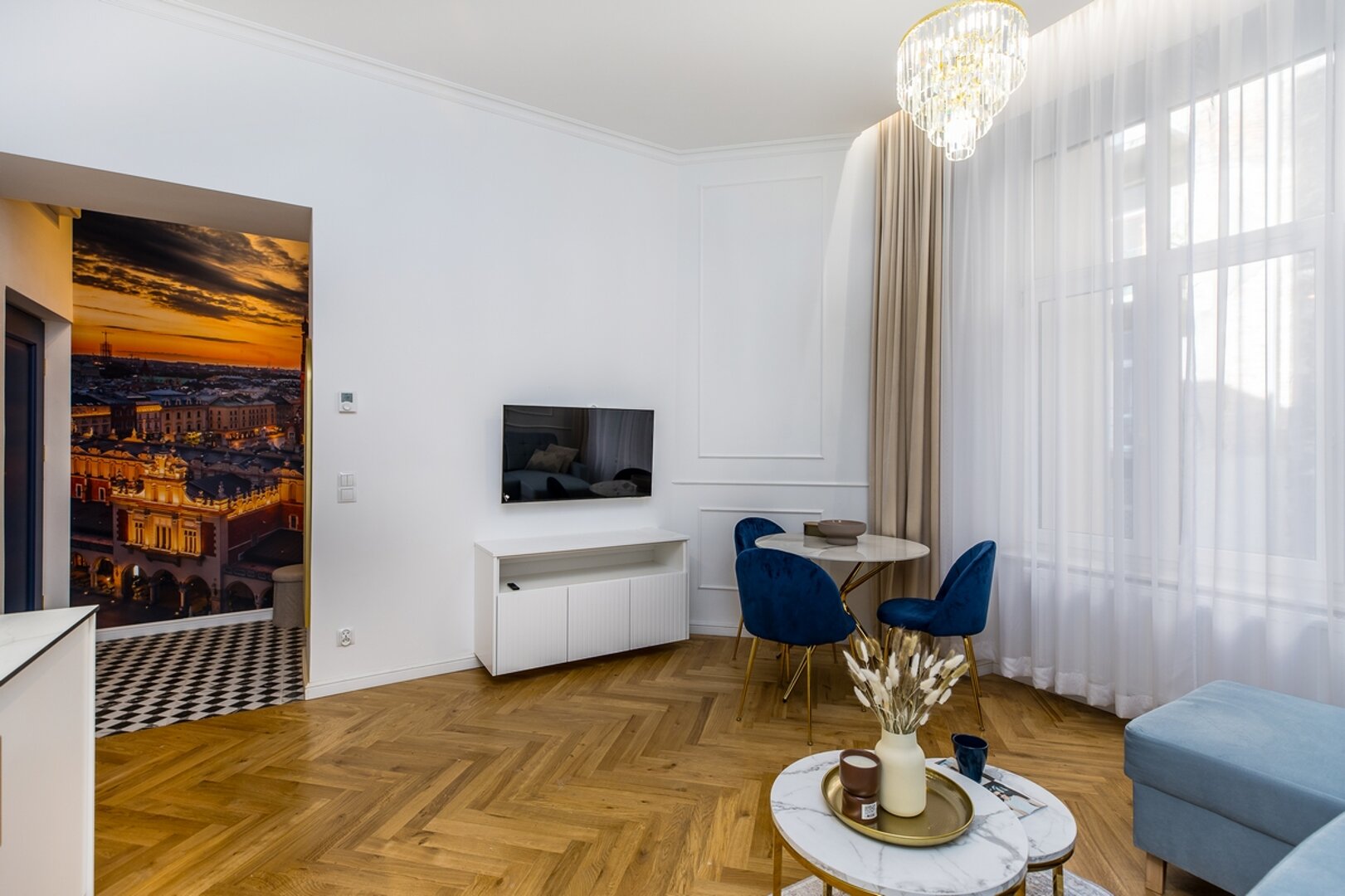 A stylish one-bedroom 34 m² apartment located in a newly renovated historic townhouse with a modern design, right in the heart of Kraków.